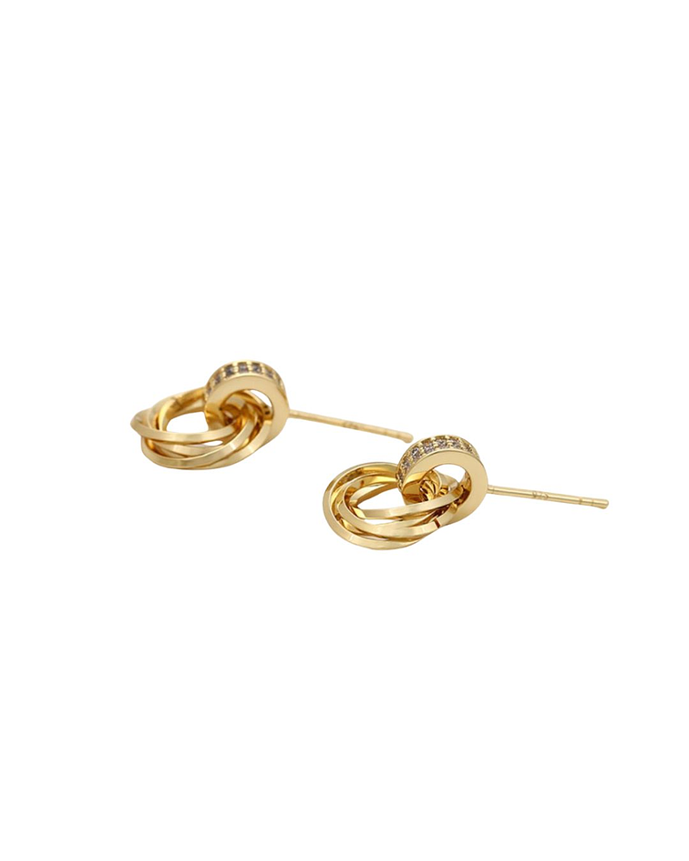 Aros colgantes de exquisito diseño, bañados en oro de 18K circonita sintética, libre de níquel e hipoalergénico.